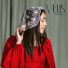 Véu artesanal bordado tule preto, com linha roda.