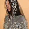 Véu bordado artesanalmente, no tule francês premium, triangular ou oval, sob encomenda, tamanho 150cm x 60cm.